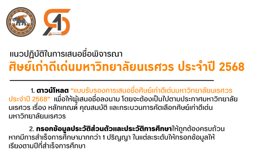 เพื่อรับการคัดเลือก "ศิษย์เก่าดีเด่นมหาวิทยาลัยนเรศวร ประจำปี 2568"